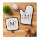 Personalised Monogram Kitchen Oven Mitt & Pot Holder Set, Custom Name Cooking Gift ideas for grandma, nina, grandmother, wreath of leaves,