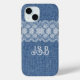 Darling in Denim! Protect your iPhone 15 forever in Blue Jeans! Transform your iPhone into a Blue Jean Jacket and flaunt your Denim Style! Add a touch of Blue Jean Lace Style to your Phone with this Customisable iPhone Case! Classic Blue Jean Denim and White Lace iPhone Case featuring a Beautiful Lace Design. Retro Vintage 1970's Style Blue Jean Bell Bottom Jeans phone case is elegant, sleek, stylish, and a subtle High Fashion touch that makes a Great Accessory addition to your Look. Blue Jean Phone Cases make the Perfect Gift for any occasion or event! Personalise this Blue Jean Lace iPhone Case to your Hearts content. Just Add Your Own Initials! The Blue Jean and Lace is Faux and Simulated.