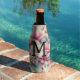 Monogram lace pink purple magnolias flowers bottle cooler