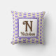 This monogram pillow is a great way to add a colourful accent in your home or create a special keepsake for a wedding or housewarming. A blue polka dot pattern appears against a beige background on both the front and back of this pillow. The letter "N" is featured in a square along with the family name. The letter and your name can quickly and easily be personalised.