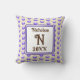 This monogram pillow is a great way to add a colourful accent in your home or create a special keepsake for a wedding or housewarming. A blue polka dot pattern appears against a beige background on both the front and back of this pillow. The letter "N" is featured in a square along with the family name and year. The letter, your name, and year can quickly and easily be personalised.