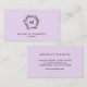 Pretty minimalist monogram business cards with an elegant black monogrammed floral wreath on a pastel lavender purple background. Feminine and modern cards designed for florists, interior designers, bloggers, etc.