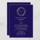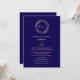 Monogram Leaf Crest Navy Blue Beige Classy Wedding Invitation