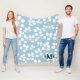Monogram white leaf pattern on sky blue colour background. Easily customised. Make sure you adjust the pattern size if you want a larger or smaller blanket. This one you can change the background colour to whatever you like.