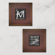 Monogram | Leather | Marble Metal Trim Square Business Card