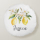 Monogram Lemon Fruits White Flowers Tree Branch Round Cushion