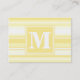 Monogram lemon yellow stripes business card