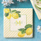 Monogram lemons watercolor stripes rustic country stone coaster