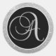 Gorgeous seals stickers / labels for your favours, envelopes, thank you cards, etc.. Monogram initial letter 'A' in unique silver design. Faux silver glitter and black. All text font, colour and size can be changed. See more in MONOGRAMMED STICKERS / SEALS. Contact designer for other monogram letter or background colour.