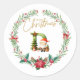 This charming Christmas sticker features a delightful illustration of Santa Claus with an initial alphabet within a Christmas wreath, capturing the essence of the holiday season. The design showcases Santa in his iconic red suit, complete with a fluffy white beard and warm smile, surrounded by festive elements. Adorned with a festive Christmas label, this sticker serves as the perfect greeting for friends and family.