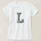 A fancy, old world style decorative monogram letter. Initials L in black.