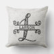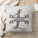 Black monogram letter "L" with the family name on a birch tree textured background.