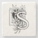 A very plain letter ‘S’ is backed by a frame and a two branches of large leaves which gives the overall effect of a collage.