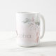 Monogram Floral Letter S - A pale blush pink watercolor wash behind delicate blush pink cottage roses. Pretty watercolor floral sprays on both sides of the mug - and decorate the large first letter of your name. Delicate hand painted smokey green foliage and watercolor sweetheart roses in blush pink is perfect for any Bridesmaid gift, Mother's Day or Birthday occasion. Just complete the name that starts with the Floral Letter (or delete the name and just have the letter monogram) . Design created by WhimsicalArtwork™ This is also part of a complete wedding suite offered by theBarefootBride™.