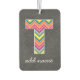 Monogram Letter T - Chalkboard and Bright Chevrons Car Air Freshener