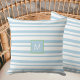 Monogram Light Blue and White Stripes Beach House Cushion