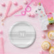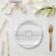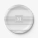 Monogram light grey stripes paper plate