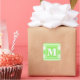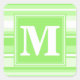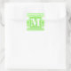 Monogram lime green stripes square sticker