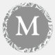 Monogram M Grey Grey Customisable Wedding Monogram Classic Round Sticker