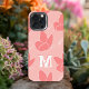 Monogram M Modern Coral Pink Butterfly Pattern iPhone Case