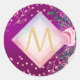 Monogram Magenta Rosegold Pink Metallic Glitter Classic Round Sticker