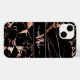Personalised Black and Rose Gold Marble Pattern Case-Mate iPhone 14 Case - Personalised with a monogram and your name in elegant calligraphy script, it exudes sophistication. The swirling marble design in black and rose gold colours adds a touch of glamour. The monogram showcases your unique identity, while your name in calligraphy script adds a personalised touch.