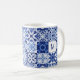 Monogram Mediterranean Blue White Tile Watercolor Coffee Mug