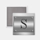 Silver brushed and shiny metal 3d frame with screws in a chrome smooth strong surface background. Easily personalise by adding any monogram, initial or name. Shown is the letter S. A great magnet nameplate for awards, medals, etc. Note that this realistic design is a printed design, not actually metal.