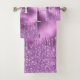 Monogram Metallic Purple Violet Dripping Glitter Bath Towel Set