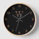 Monogram Minimal Elegant Black Gold Script Name Clock