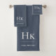 Monogram Minimal Elegant Navy Blue White Stylish Bath Towel Set