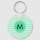 Monogram Mint Green and White Chevron Pattern Key Ring