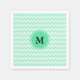 Monogrammed mint green and white zigzag pattern paper napkins.