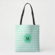 Monogrammed mint green and white zigzag pattern All-Over-Print Tote Bag.