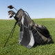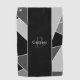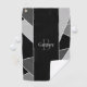 Background of cool abstract design with large black stripe on centre and custom monogram and name overlayed in white and grey.  Makes a great gift idea for men who love golfing!