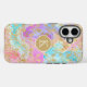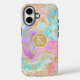 Monogram Modern Abstract Glitter Personalised iPhone 16 Pro Max Case Phone Case features a colourful abstract liquid art background in pink, purple, red and blue with a pattern of gold flowers and accented with faux gold glitter and personalised with your custom monogram in the centre. Perfect gift for her for Christmas, birthday, Mother's Day and more whether girlfriend, sister, mother, friends. Created by Evco Studio www.zazzle.com/store/evcostudio