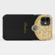 Monogram iPhone cases with cool simulated gold metal looking background elements and rhinestone jewel bling, along with a monogram you can personalise with any name or initials in a modern style suitable for use in business situations. Protects your mobile phone in style and is designed for men or women with modern taste.