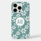 Monogram Modern Girly Floral Pattern Personalised iPhone 16 Pro Case features a trendy white floral pattern with your personalised monogram. Personalise by editing the text in the text box provided. Designed for you by Evco Studio www.zazzle.com/store/evcostudio