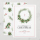 Monogram Modern Holly Berry Wreath Merry Christmas Holiday Card