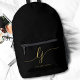Monogram Modern Minimal Black Gold Script Initials Printed Backpack
