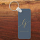 Monogram Modern Minimal Elegant Navy Blue Gold keychain Script Calligraphy Initials Keychain