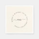 Monogram, modern, minimal, beige wedding napkin. Personalised with your name and date. With black coloured font, curved monogram. Your names, date and wedding location are written in a circle around the monogram.