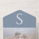 Monogram Modern Photo Dusty Blue QR Code All In One Invitation