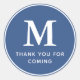 Monogram Modern Simple Chic Thank You For Coming Classic Round Sticker