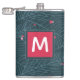 Customise this flask with the initial of your choice. Features an original spruce foliage with berries illustration. In blues, greens and reds. Makes a wonderful holiday or Christmas gift.