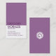 Modern simple plain professional SCO specialist business card. Plum purple and white on front with customisable monogram on the back.