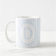 This elegant monogram mug features a soft blue and white striped design with the letter D in the center.