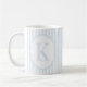 This elegant monogram mug features a soft blue and white striped design with the letter K in the center.