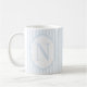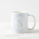 This elegant monogram mug features a soft blue and white striped design with the letter N in the center.