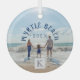 Monogrammed customizeable Myrtle Beach, South Carolina souvenir round glass Christmas ornament with optional year date and a sunny seashore scene showing a happy family enjoying the beautiful Grand Strand surf and sand. Because the script text on this ornament is fully customizeable you can change the name to any beach of your choice such as "Miami Beach", etc.
